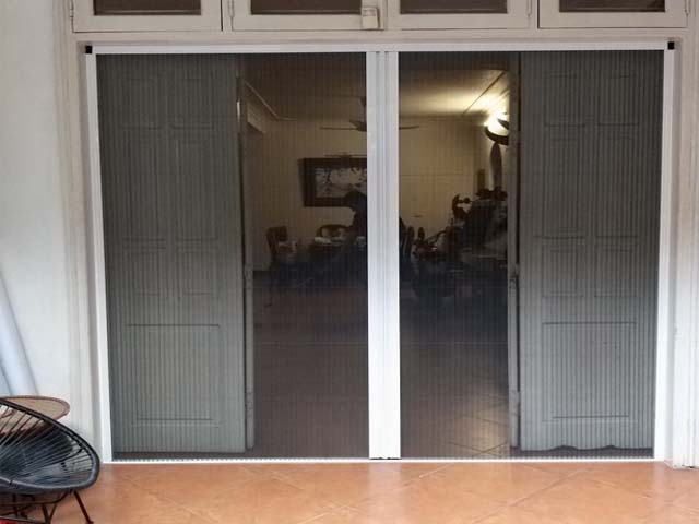 Cửa chống muỗi xếp gọn tại cửa ban công chung cư