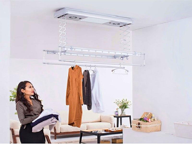 - Giàn phơi điện tử với thiết kế cân bằng chuyển động, chống lắc rung.