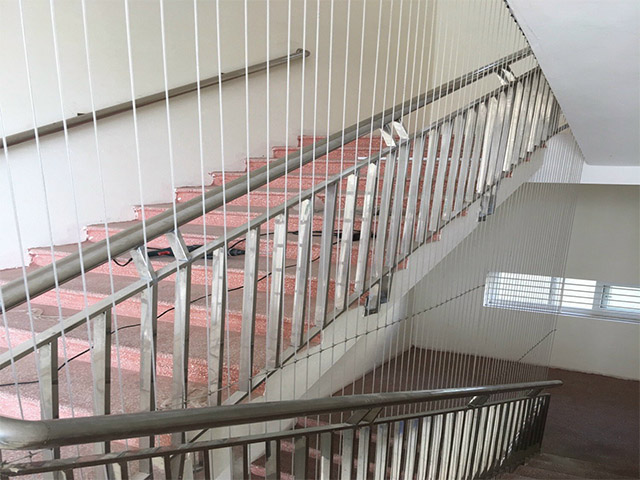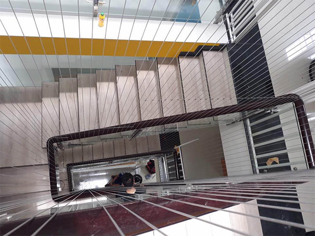 Sợi cáp inox bọc nhựa PS như tấm lưới vô hình, đảm bảo tính thẩm mĩ cho cầu thang